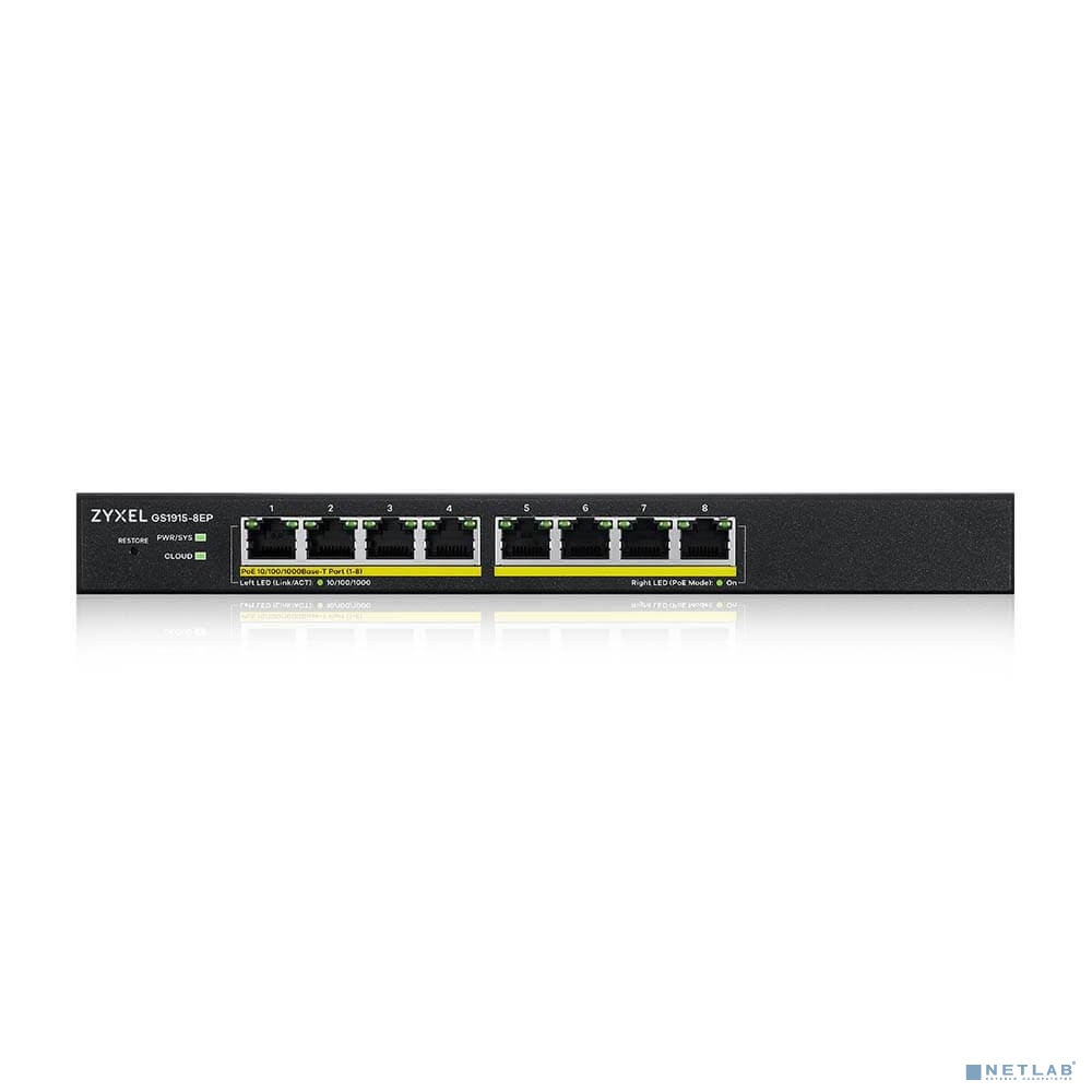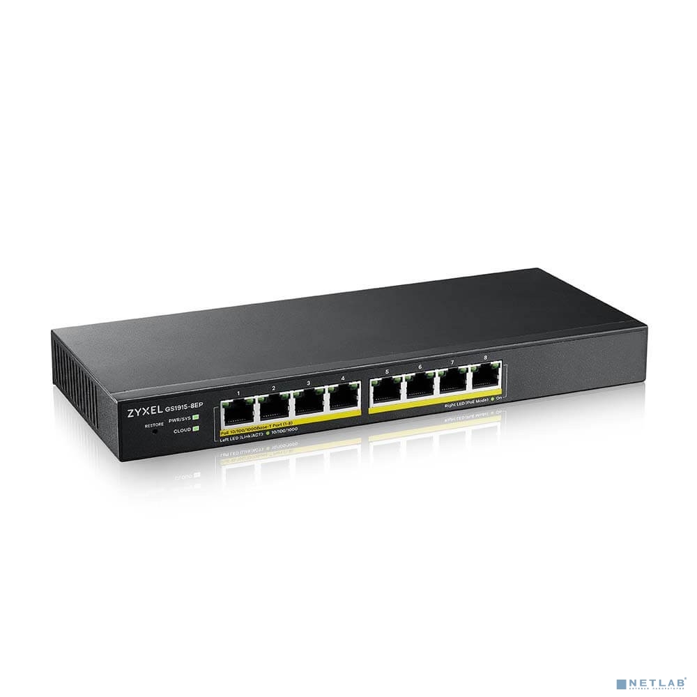 Smart L2 PoE+ Zyxel NebulaFlex GS1915-8EP, 8xGE PoE+, бесшумный